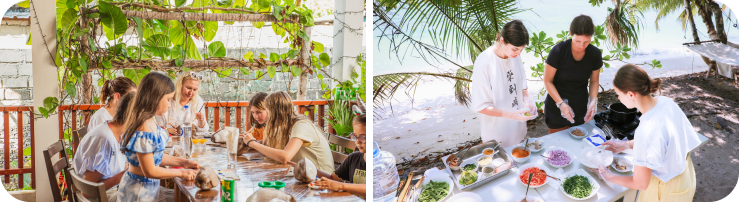 Солнышко на Мальдивах очень активное, поэтому в дневные часы дети будут заняты в мастерских или на пляже в тени деревьев. Риск обгореть или получить солнечный удар сводится к нулю. Вечерняя программа успокоит детей и подготовит ко сну. По нашему опыту, дети обычно быстро засыпают после насыщенного активностями дня.